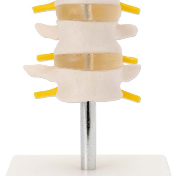 CES VERTÈBRES LOMBAIRES PERMETTENT DE MONTRER LA STRUCTURE DES VERTÈBRES LOMBAIRES EN 2 PIÈCES AVEC UN DISQUE INTERVERTÉBRAL NORMAL ET UNE MOELLE ÉPINIÈRE A DES RACINES NERVEUSES, QUI CONSTITUENT UNE PARTIE DE LA COLONNE VERTÉBRALE, QUI SE SITUENT EN BAS DU DOS.